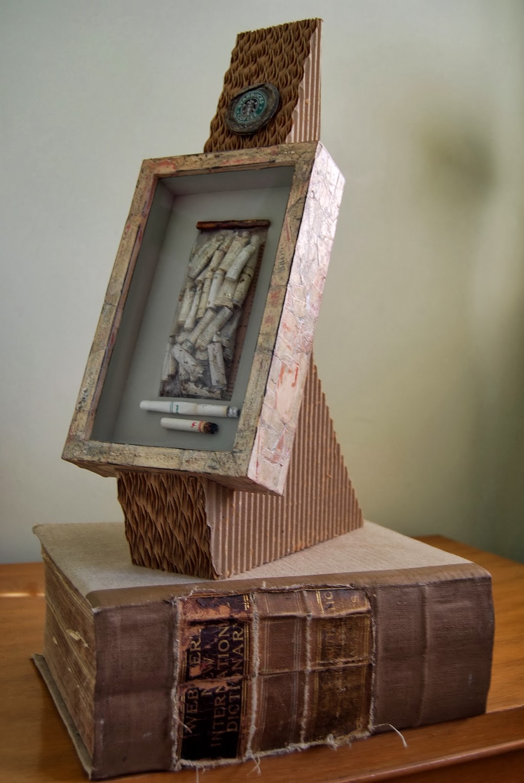 BRAND CIGARETTE PACKS, AN OIL PAINT MIX OF WAX, ANTI REFECTIVE GLASS, SHELLAC,